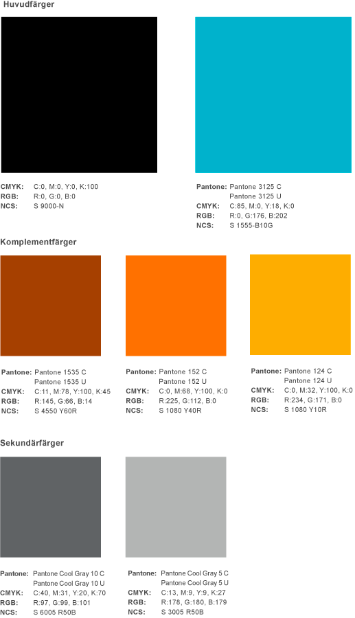 Förutom grundfärgpaletten finns två sekundärfärger i den grå färgskalan som används då en bredare färgpalett behövs, i t ex diagram och brödtexter.