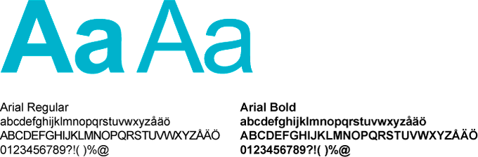 Då webben har en begränsad palett av typsnitt har vi valt att använda Arial för rubriker och Georgia i brödtext. Dessa används även i Microsoft Office programvaror.