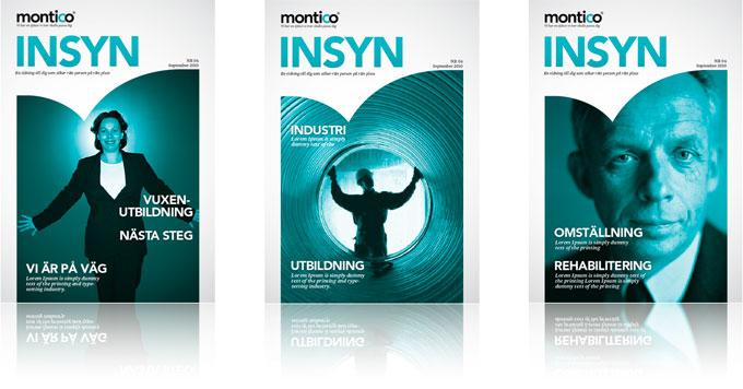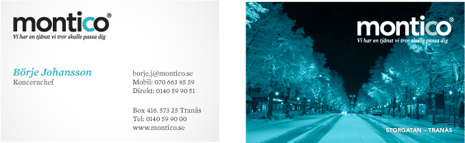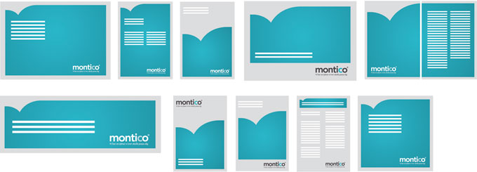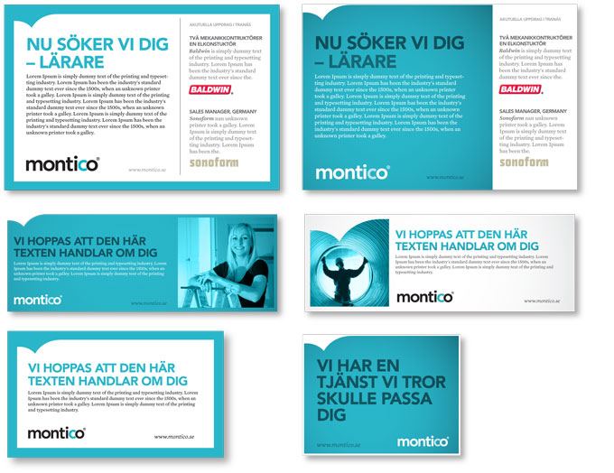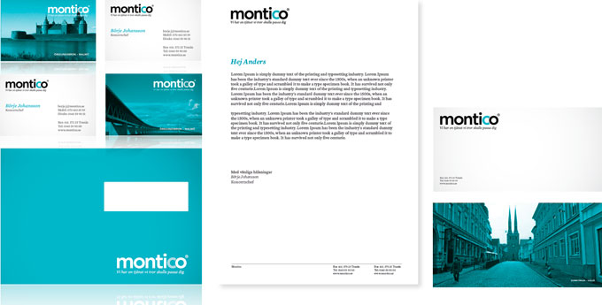 Nedan finns ett antal exempel på hur Monticos identitet kan appliceras. Observera att detta endast är skissmaterial och får ej användas utanför denna manual.